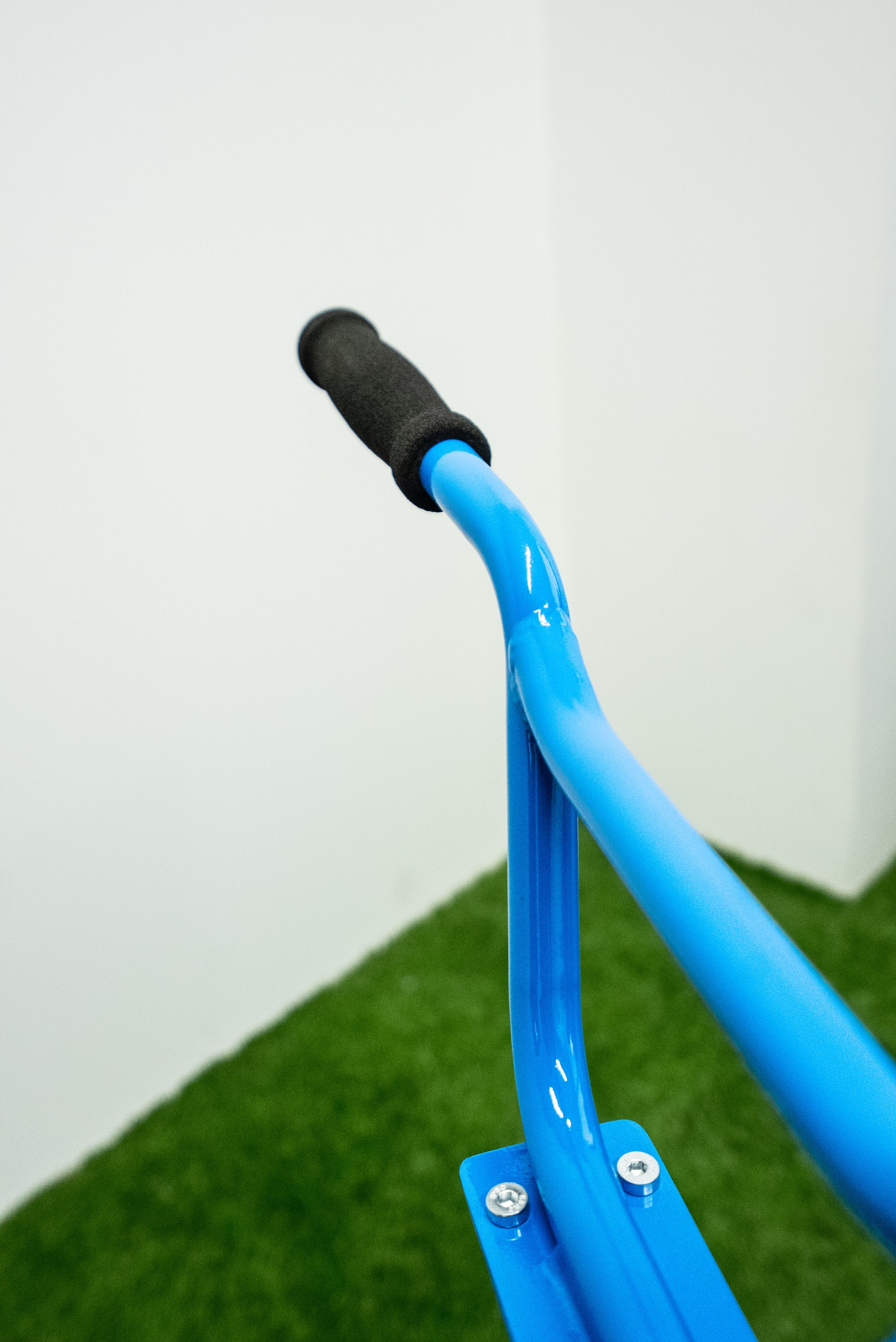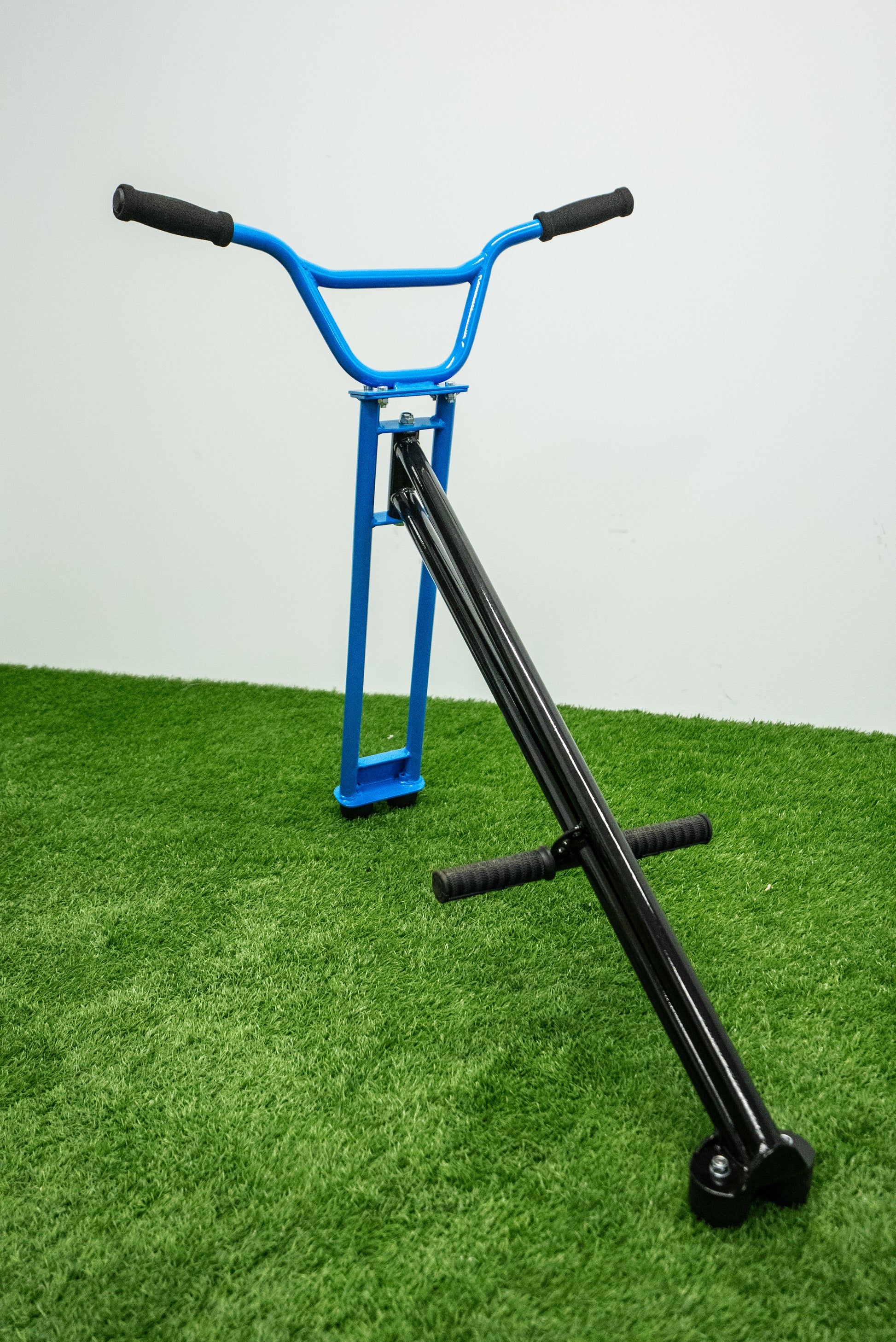 La bicicleta de entrenamiento sin ruedas es un dispositivo diseñado para el desarrollo de capacidades físicas y habilidades motoras específicas en pilotos de trial y deportistas que requieren un alto nivel de control, fuerza-resistencia, coordinación y equilibrio.
